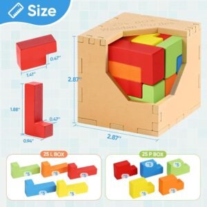 Rainbow Toys Wooden 3D Brain Teaser Puzzle Cube – Colorful IQ Building Block Game for Kids & Adults